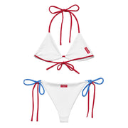 Disclaimer: To make your All-Over Print Recycled String Bikini last longer, thoroughly rinse it off after each use and get rid of any chlorine/salt residue.